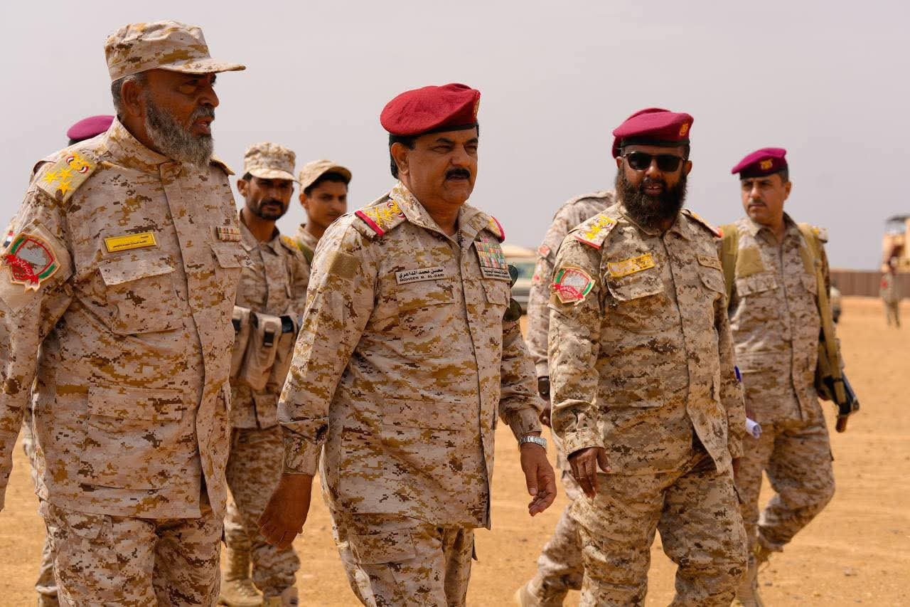 ونقل وزير الدفاع لمنتسبي قوات درع الوطن، تحيات القيادة السياسية ممثلة بفخامة الرئيس الدكتور رشاد محمد العليمي، رئيس مجلس القيادة الرئاسي، وأعضاء المجلس والحكومة.