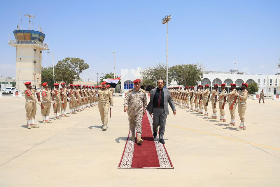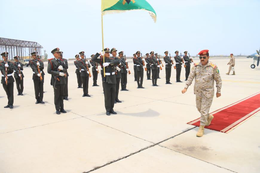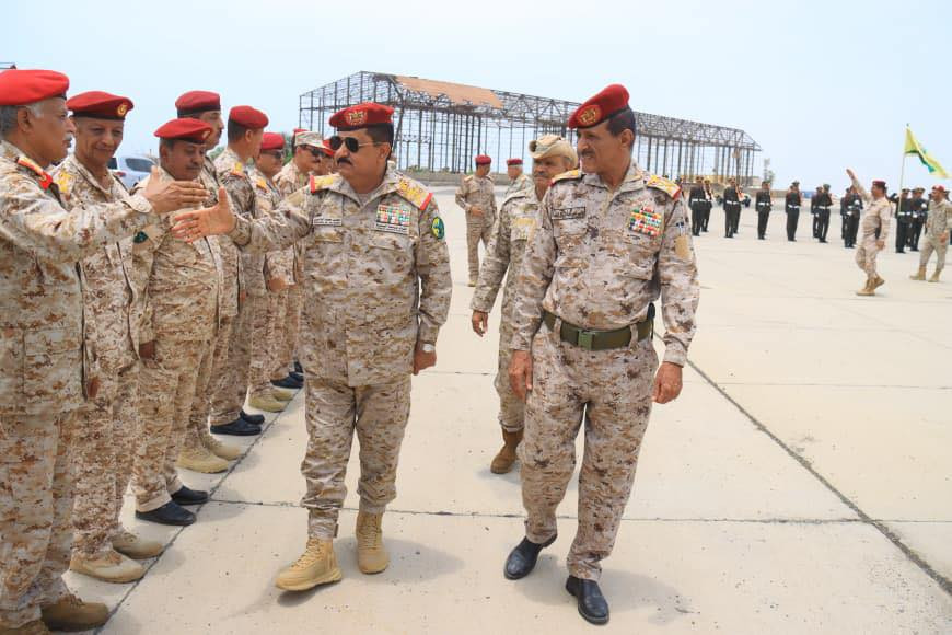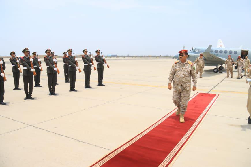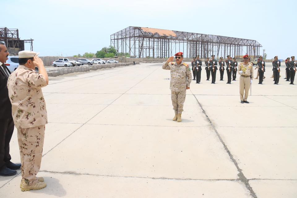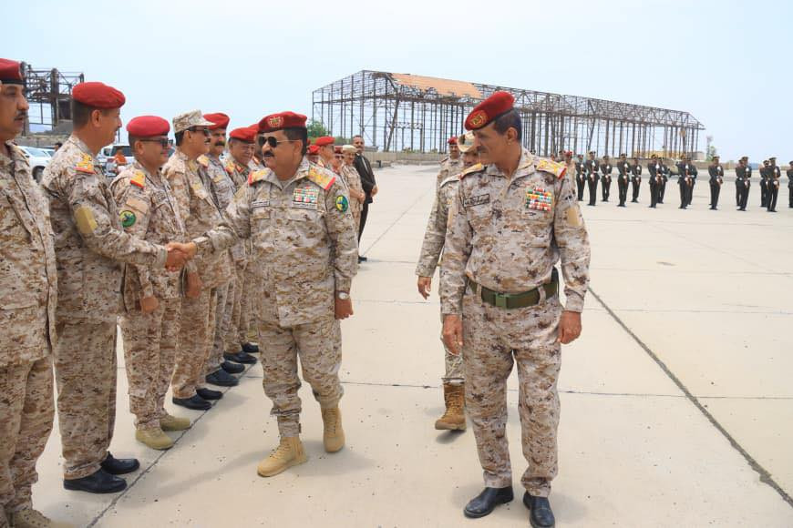 وكان في استقباله في مطار عدن نائب رئيس هيئة الأركان العامة اللواء الركن احمد البصر ومساعد وزير الدفاع اللواء الدكتور صالح حسن ورئيس هيئة العمليات المشتركة اللواء الركن صالح علي ورئيس هيئة الاستخبارات اللواء الركن احمد اليافعي ورئيس هيئة القوى البشرية اللواء الركن احمد المرزوقي ونائب المفتش العام اللواء الركن مسفر الحارثي ومدير الكلية الحربية اللواء الركن عبدالكريم الزومحي وقائد الشرطة العسكرية اللواء الركن محمد الشاعري ونائب رئيس هيئة العمليات اللواء الركن ناجي عباس ونائب رئيس هيئة الاسناد اللوجستي اللواء الركن علي الفضلي وعدد من مدراء الدوائر والقيادات العسكرية.