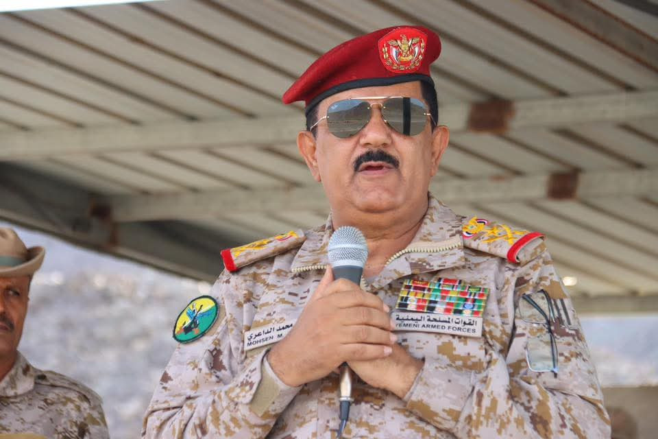 وأكد الفريق الداعري، الوفاء لدماء الشهداء وحمل رايتهم والسير على نهجهم حتى تحقيق النصر الكبير، مثمنًا الموقف العروبي الأصيل للأشقاء في التحالف بقيادة المملكة العربية السعودية ودولة الإمارات العربية المتحدة في دعم اليمن وقواته المسلحة.