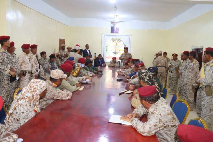 واستمع عضو مجلس القيادة، من الفريق الداعري، إلى عرض حول نتائج زياراته الميدانية الى مختلف المناطق العسكرية والمحاور، ومستويات التدريب والتنسيق بين مختلف التشكيلات والوحدات العسكرية، وما تحقق في إطار تعزيز الجاهزية القتالية في مواجهة المشروع الإيراني وأدواته المتمثلة بمليشيات الحوثي الارهابية.
