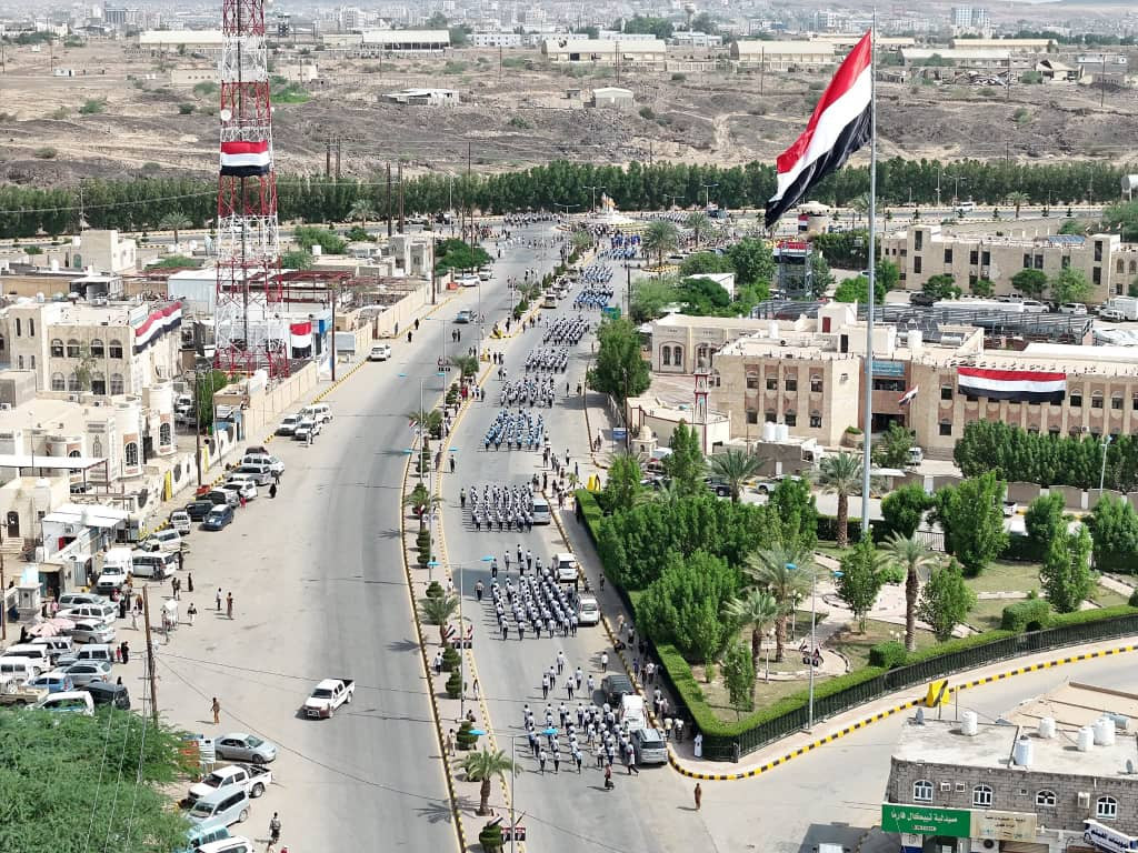 محافظة مأرب تحتفي بأعياد الثورة بمسيرة شبابية وكشفية بالموسيقى العسكرية